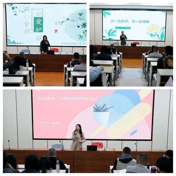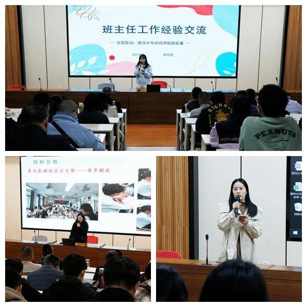 分享会上,班主任代表相继上台作专题发言。刘欣老师作为班主任和心理健康教师,分享了毕业季学生心理健康工作的探索与实践;郑向雯老师分享实施分层联动的教学策略,有效激活了班级两极的新能量,促进了班级整体的均衡发展;张安静老师分享如何悉心指导,助力学生以明确的目标和良好的习惯成就辉煌未来;黄淑芬老师在教育过程中秉持“少一点批评,多一份理解”的原则,以更加包容的心态走进学生内心,促进他们的健康成长;龚雪惠老师用心管理班级,以深沉的爱为每位学生保驾护航,致力于成为学生心中那位既严格又慈爱、最好的引路人;陈楚云老师分享了利用操行表评分制度和优化班干部队伍管理制度,共同营造一个和谐、高效、创新的班级管理新生态,促进学生全面发展。老师们的发言内容丰富,见解独到,赢得了现场阵阵热烈掌声。