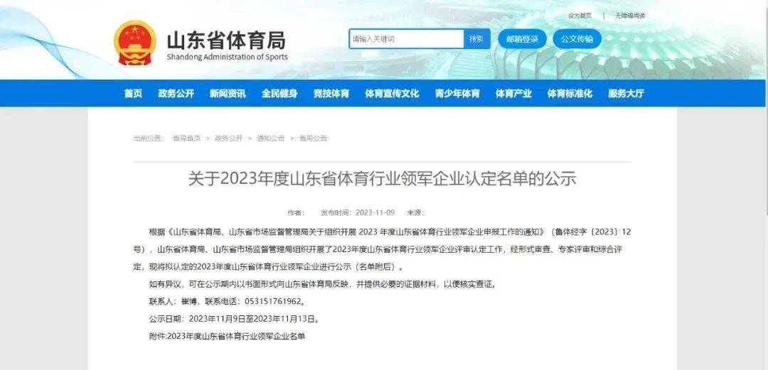据悉,根据《山东省体育局、山东省市场监督管理局关于组织开展 2023 年度山东省体育行业领军企业申报工作的通知》(鲁体经字〔2023〕12 号)要求,山东省体育局、山东省市场监督管理局共同组织开展了2023年度山东省体育行业领军企业评审认定工作,山东省体育行业领军企业申报设领军型体育企业、创新型体育企业和新锐型体育企业三个类别。