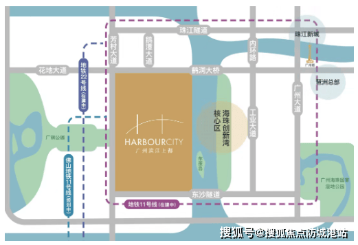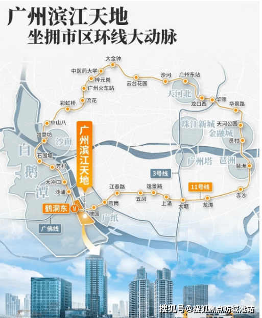 项目地处荔湾区白鹅潭 CBD 核心区,占据珠江后航道约 2 公里黄金江岸线,是广州五大世界级地标商圈之一,未来将比肩珠江新城。交通配套 “双地铁 + 水上巴士” 多维覆盖,距离地铁 11 号线 号线为广州首条环线,可速连珠金琶 CBD),规划中的佛山地铁 11 号线紧挨项目南侧设站,实现广佛跨城便捷通勤;3 站接驳在建 22 号线(未来南延段直通深圳),依托站城一体化 “TOD” 模式,联通城市、车、人及轨道系统;此外,项目还规划水上巴士线路,通达珠江两岸,新增滨水出行方式,无论是市内通勤还是跨城出行均极为便捷。