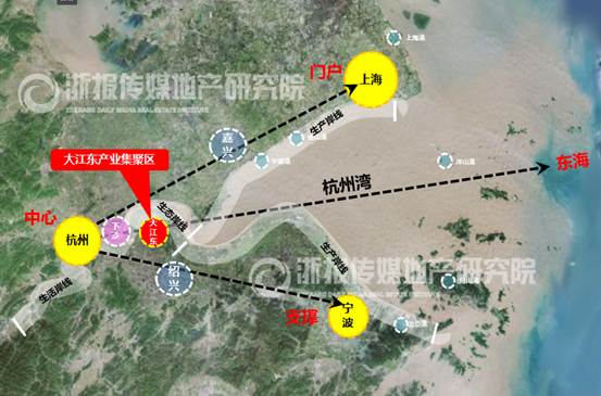 大江东新城战略区位十分优越。大江东新城,地处中国最具经济活力的长三角地区南翼,处于杭州湾“V”字形产业带的拐点,与上海、南京、宁波等城市形成“1小时经济生活圈”,是杭州都市圈“接轨大上海、融入长三角、提高首位度、打造增长极”的重要门户,是杭州城市发展的战略要地,被誉为“杭州的浦东”。