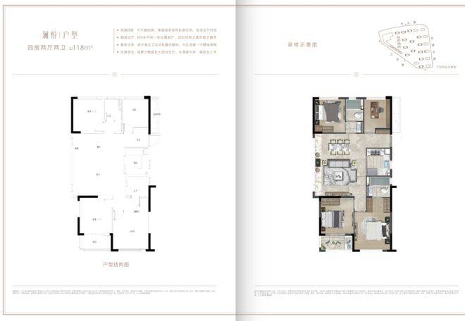 118㎡澜悦|四房两厅两卫:约118平户型最为惊艳,全部边套设计。如今市面上的四房如果要追求尺度,基本要130平以上;小面积四房,基本是3+1房设计,数字1大多代表的是像储藏间或衣帽间这样的功能房。但湖沁宸园的118平,是完整四房格局,兼具尺度与功能性。
