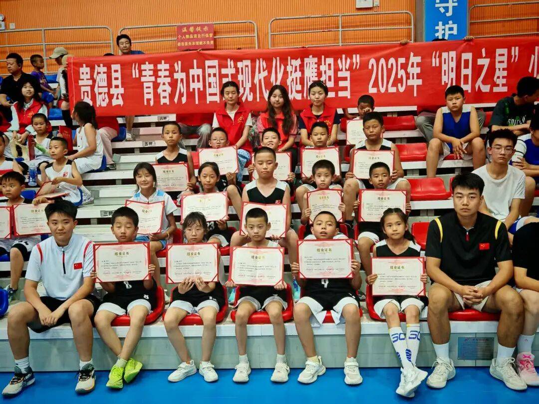 7、2025年7月20日-7月29日,贵德县2025年暑假“明日之星”篮球公益夏令营在贵德县群众文化体育场馆和青少年多功能篮球场举办,活动由共青团贵德县委、贵德县文体旅游广电局主办,贵德县少工委、贵德县青年联合会、贵德县业余篮球协会承办,此次活动共招生60人,分为U8组、U12组、U16组,负责人李梦舸,教练员李国栋、王佳宜、桑久琳、罗永贺、宋涛、龙倩楠。这是连续两年举办夏令营,得到家长和孩子们的欢迎,为以后举办青少年篮球夏令营积累了经验、奠定了基础。