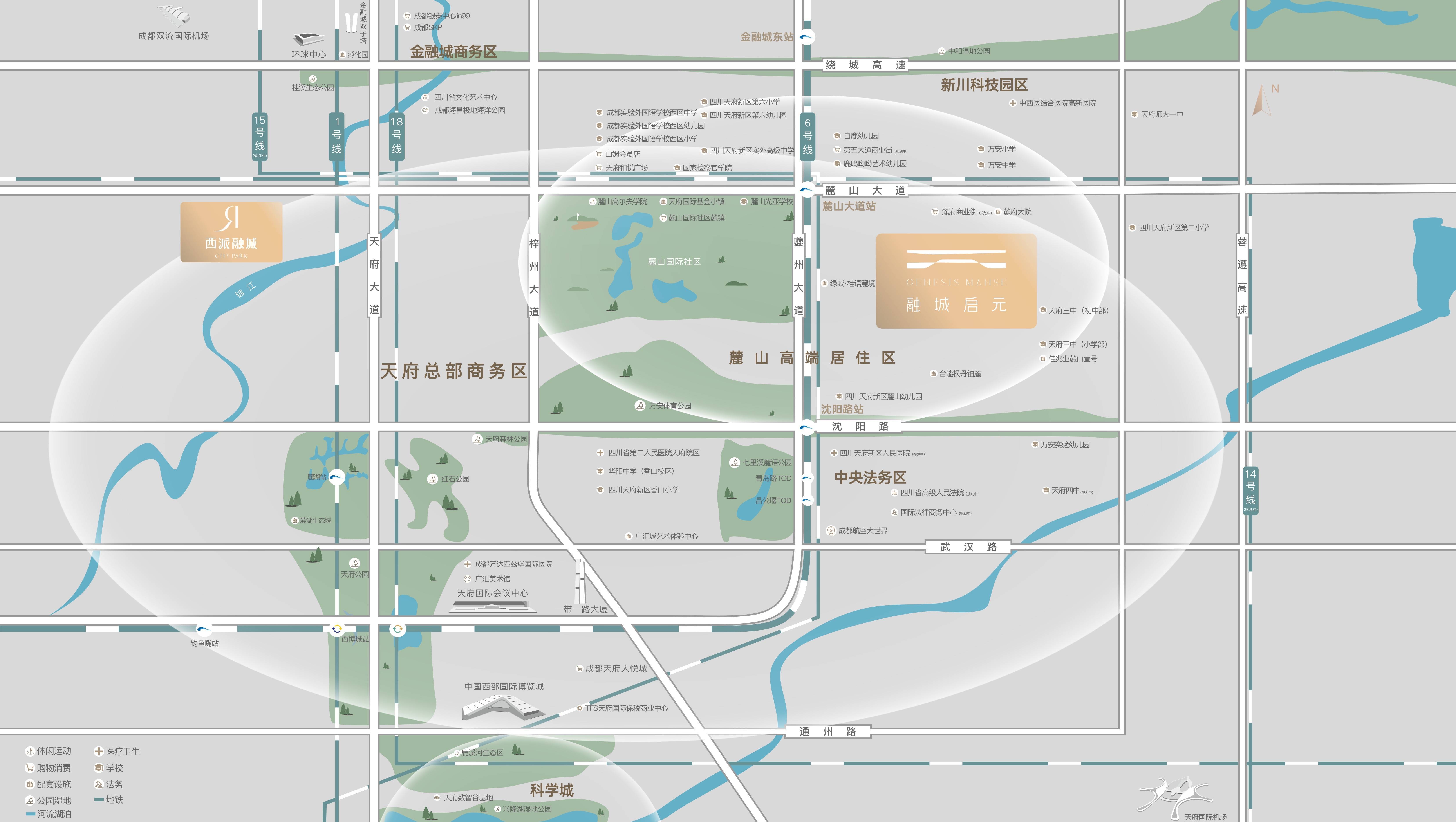 周边拥有天府新区人民医院、四川省第二人民医院天府院区、中西医结合医院高新医院及规划中的万达国际医院等