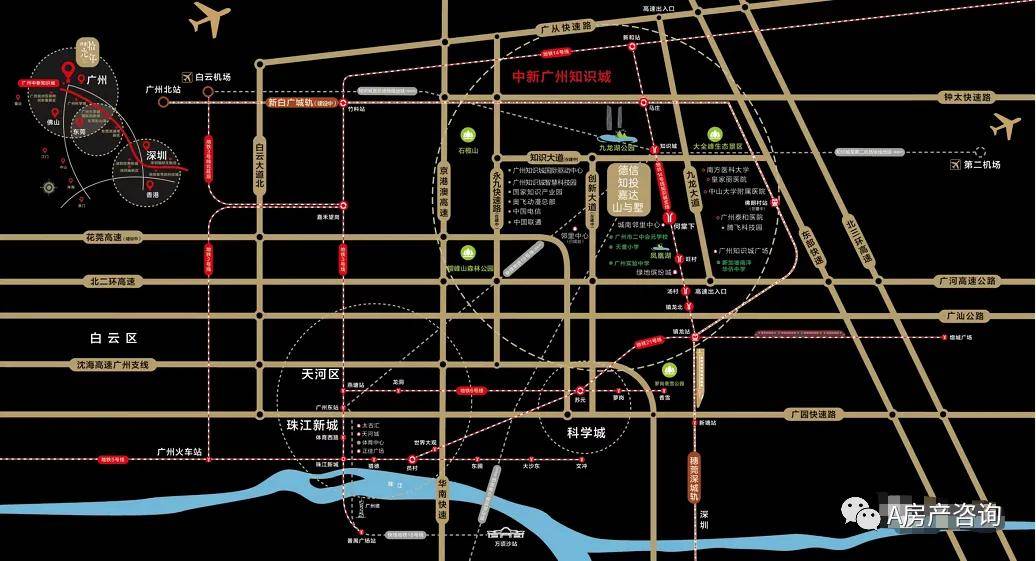 8条轨道交通:知识城至南沙(广中珠澳高铁)、知识城至广州东站(37号线)、机场联络线(白云机场至规划的增城正果国际机场)、广河高铁、新白广城轨、地铁14号线号线支线号线号线开通后,从知识城到广州东站,只需12分钟:新白广城际预计2022年上半年完成建设并进行试运营。于2022年12月底正式开通运营,届时10分钟直达白云机场,白云机场至深圳机场也仅需40分钟。实现1小时大湾区交通圈。