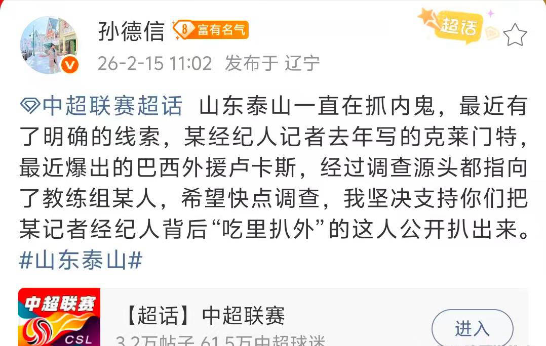 关于爆料绯闻外援的记者数量众多,目前难以确定具体是哪位教练组成员提前透露了消息。但考虑到孙德信本身消息的高度可信性,接下来值得关注的是泰山队是否会调整教练组人事配置。一旦相关人员曝光,相应的经纪人与记者团体身份也有望浮出水面。而正是这位频繁提前精准爆料泰山队引援动态的记者,已多次干扰球队原定的引援计划,给泰山带来不小麻烦。
