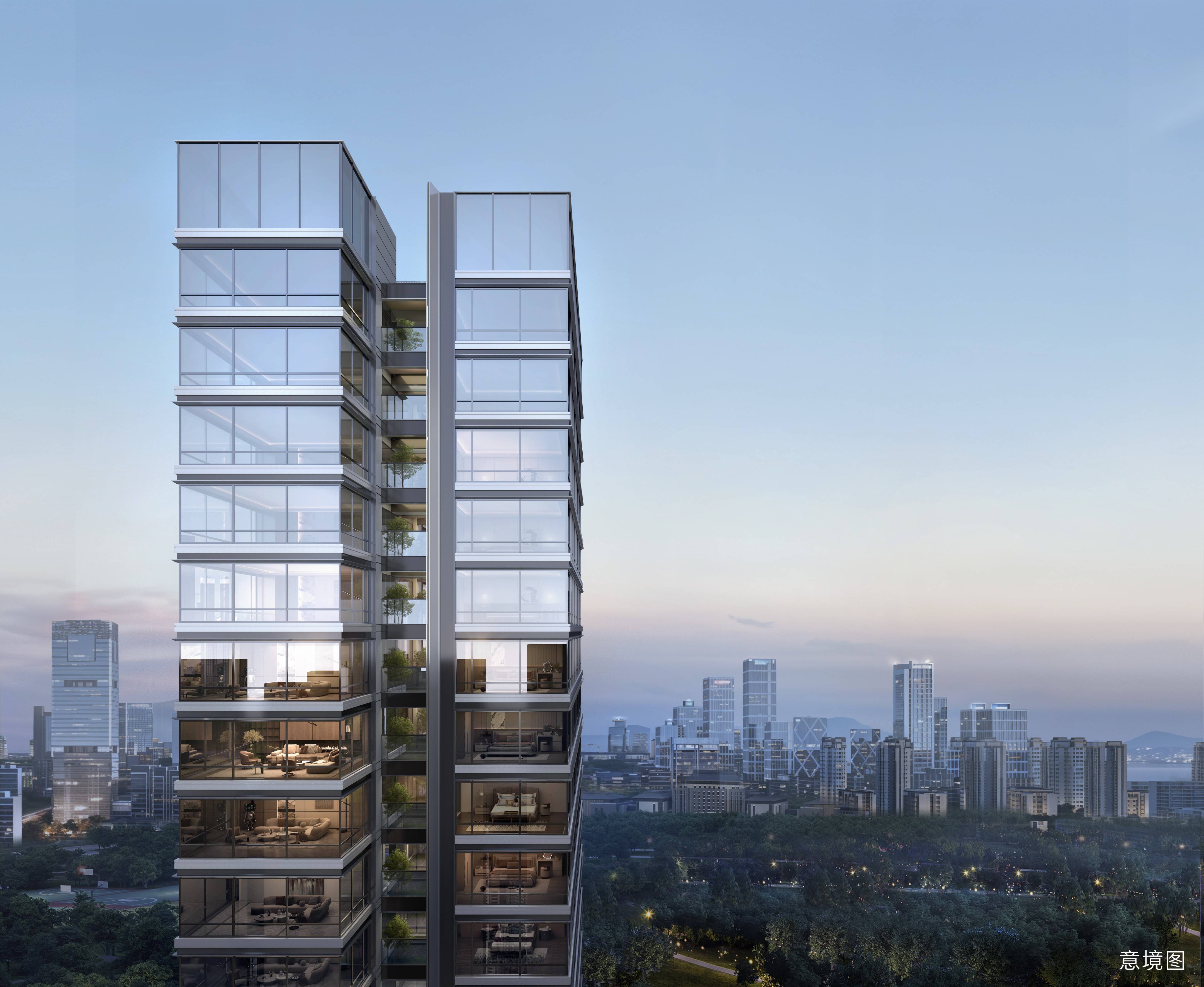 •新加坡钻感立面:深大面蓝灰色LOW- E玻璃,搭配香槟色铝板的温润光泽,碰撞出层次丰富的视觉韵律。